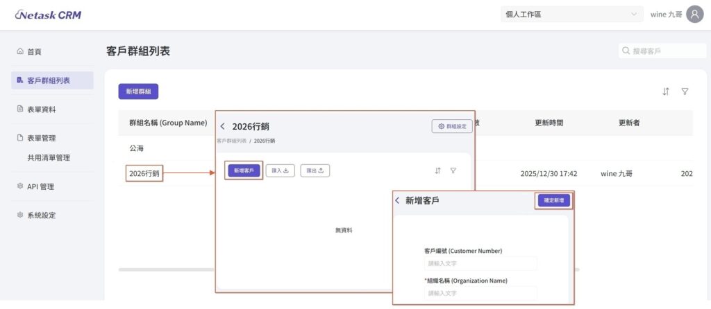 首頁 產品應用 3 雲CRM 02.操作說明 B.客戶管理 客戶基本資料維護與相關表單資料管理 客戶基本資料維護與相關表單資料管理 新增客戶 可於公海或已建立的群組中,點選新增客戶建立資料。 相關表單 當表單設有關連客戶名稱欄位時,則系統會將所屬同一客戶相關表單清單資料,同步顯示於下方表單列表。 在 Line 分享 在 Facebook 分享 在 X (Twitter) 分享 在 電子郵件 分享 複製至剪貼簿