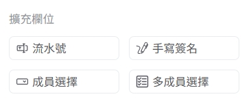 首頁 產品應用 3 雲CRM 02.操作說明 D.表單管理 No-code 智慧表單工具介紹-擴充欄位 No-code 智慧表單工具介紹-擴充欄位 擴充欄位,包含流水號、手寫簽名、成員選擇與多成員選擇使用工具。 下方為各擴充欄位工具套用後的樣式呈現。 補充:手寫板與手寫簽名有什麼不同? 在 Line 分享 在 Facebook 分享 在 X (Twitter) 分享 在 電子郵件 分享 複製至剪貼簿 上一 文章 No-code 智慧表單工具介紹-排版欄位