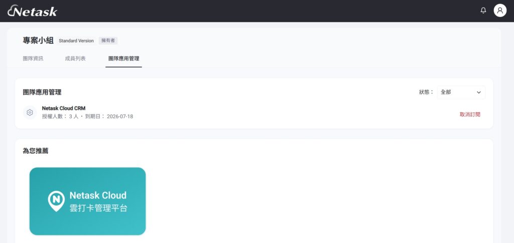 首頁 產品應用 1 雲平台 02.操作說明 C.團隊管理 團隊應用管理 團隊應用管理 依照所屬團隊檢視團隊已訂閱的應用程式相關資訊。下方為您推薦區塊則為其他尚未訂閱的應用程式介紹說明頁。 團隊訂閱應用管理操作方式─ 在 Line 分享 在 Facebook 分享 在 X (Twitter) 分享 在 電子郵件 分享 複製至剪貼簿 上一 文章 團隊成員管理 下一 文章 團隊列表